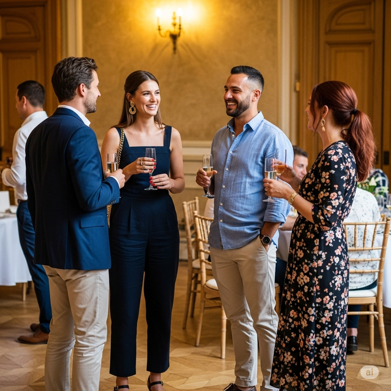 Sugerimos, como guia, que procurem por um "traje esporte fino", algo semi formal, um equilíbrio entre descontraído e elegante.